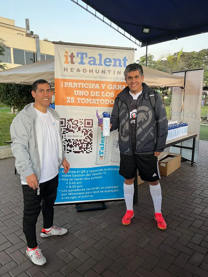 Además, IT Talent aprovechó la ocasión para interactuar con los asistentes y compartir más sobre nuestra misión y valores. Durante el evento, organizamos un sorteo de Tomatodos entre aquellos que completaron nuestra encuesta sobre el Talento TI en las empresas del Perú. Esta iniciativa tuvo una gran acogida, y muchos asistentes participaron activamente, lo que nos permitió obtener valiosas perspectivas sobre la situación actual del talento tecnológico en el país.