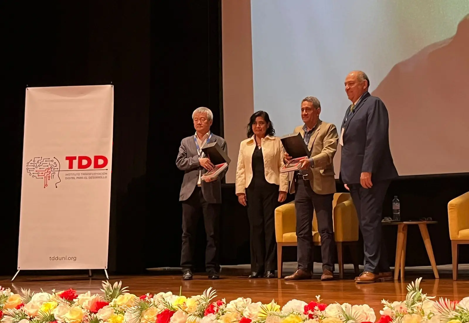 Compartimos también momentos especiales con el público y con figuras reconocidas del sector, incluyendo al presidente del Colegio de Ingenieros. Fue una experiencia enriquecedora que nos permitió tomar fotos, intercambiar experiencias y fortalecer lazos con la comunidad tecnológica y profesional.